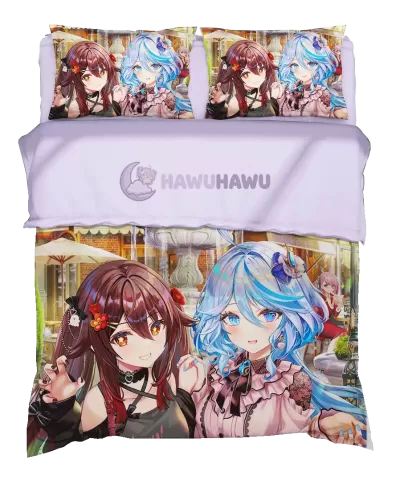 Furina&HuTao Genshin Impact Literie Gamer Durable avec Fermeture Invisible