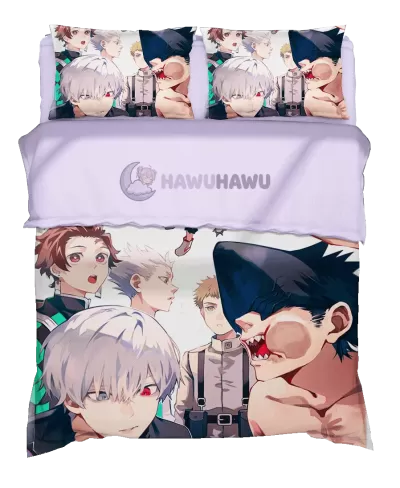 Kaneki Ken&Hoshiumi Kourai&Falco Grice&Kamado Tanjirou&Denji Attack on Titan&Haikyu!!&Tokyo Ghoul& Kimetsu no Yaiba&Chainsaw Man Parure de Lit Anime Aventure et Confort 3 Pcs