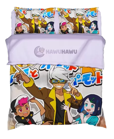 Friede&Liko&Roy Pokemon housse de couette 200x200 manga Parure de Lit Manga Détails Ultra Précis HD