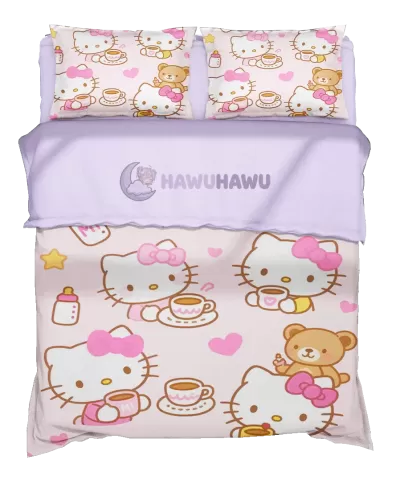 Hello Kitty Housse de Couette Kawaii Parure de Lit Manga Vision Nocturne Graphique HD