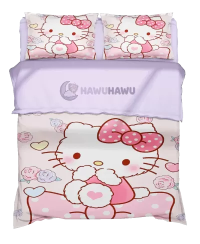 Hello Kitty Housse de Couette Kawaii Parure de Lit Waifu Couleurs Éclatantes HD