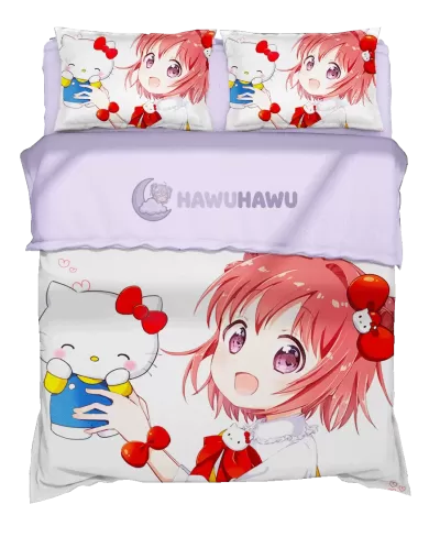 Hello Kitty&Akaza Akari Yuru Yuri Parure de Lit 3 Pièces Impression Numérique Pro