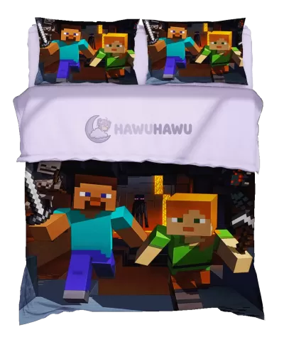 Steve&Alex Minecraft Literie Gamer Respirante Sommeil dans les Nuages