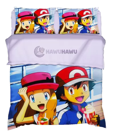 Pikachu&Serena &Ash Ketchum Pokémon Parure De Lit Manga DéTails Ultra-PréCis Hd