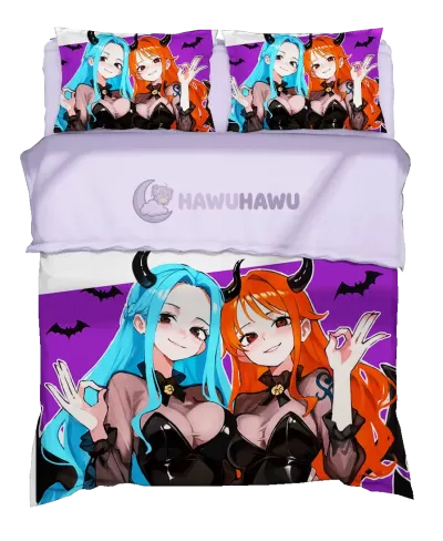 Nami&Nefertari Vivi One Piece Housse de Couette Waifu Éclatante Set 4 Pièces