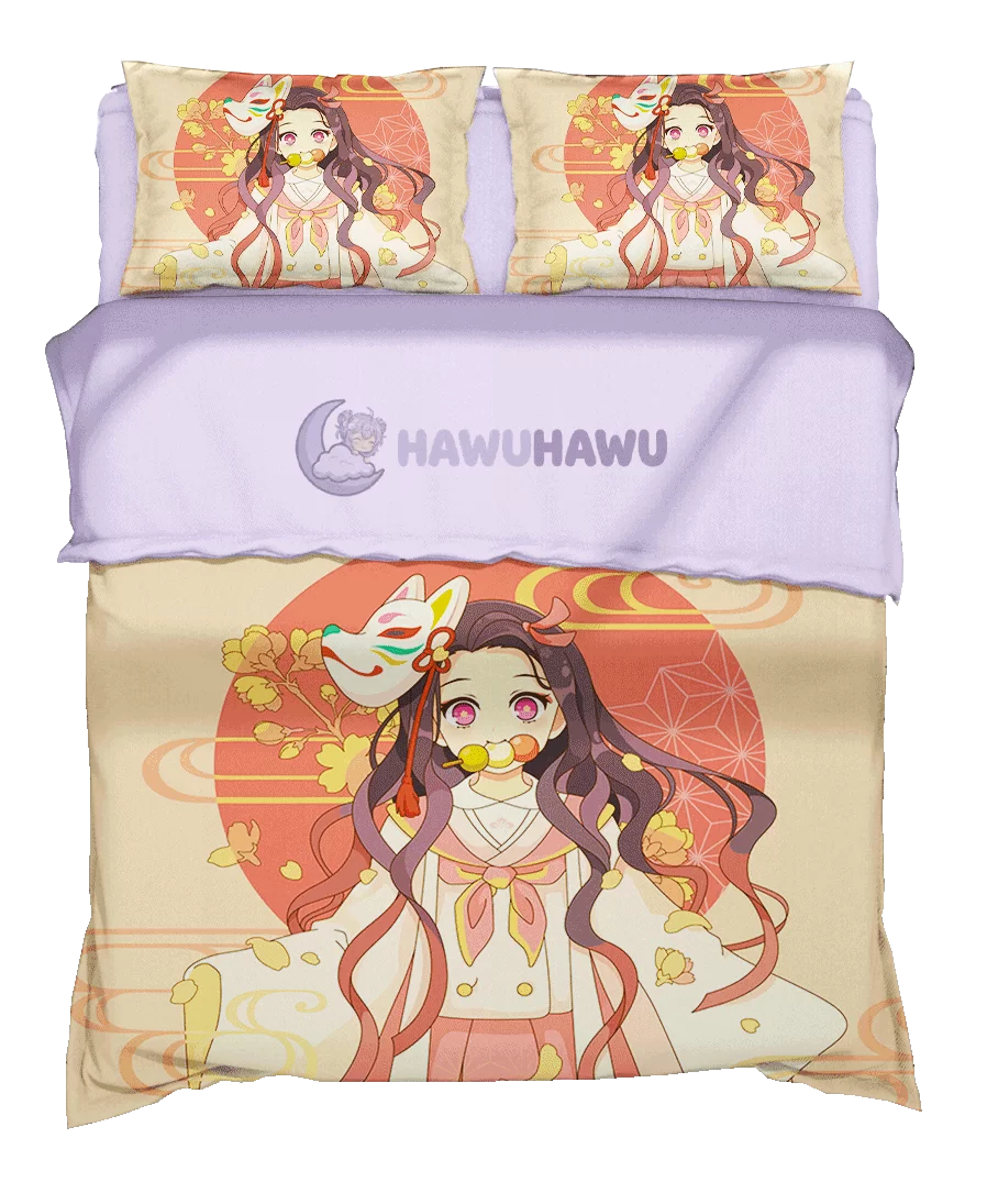 Kamado Nezuko Demon Slayer: Kimetsu no Yaiba Parure de Lit Anime Pack Complet 4 Pcs HD