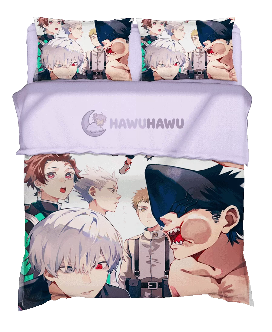 Kaneki Ken&Hoshiumi Kourai&Falco Grice&Kamado Tanjirou&Denji Attack on Titan&Haikyu!!&Tokyo Ghoul& Kimetsu no Yaiba&Chainsaw Man Parure de Lit Anime Aventure et Confort 3 Pcs