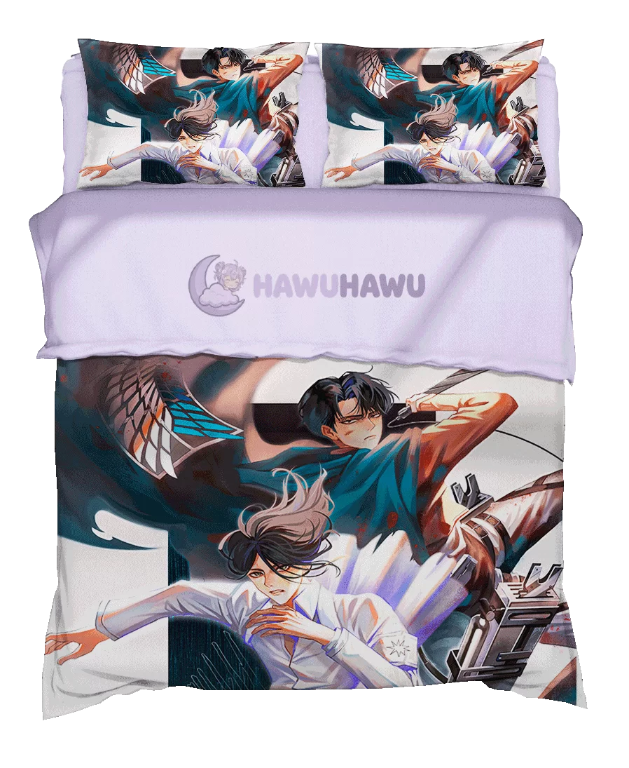 Levi Ackerman&Eren Yeager Attack on Titan Parure de Lit Anime Microfibre Anti-Acariens